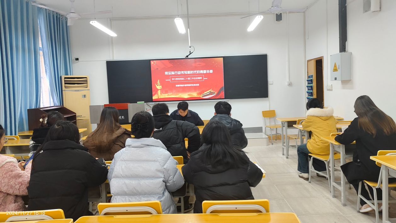 为深入学习贯彻党的二十届三中全会精神,进一步提升学生党员队伍的政治素养,教育引导学生党员锐意进取、开拓创新,在学习、工作和实践中发挥模范带头作用,做有理想、有担当的时代新人。11月27日下午,外语学院学生党支部在6304教室开展了学习党的二十届三中全会精神学习会。全体党员参加了本次会议,此次会议由学生党支部书记刘思晨主持。