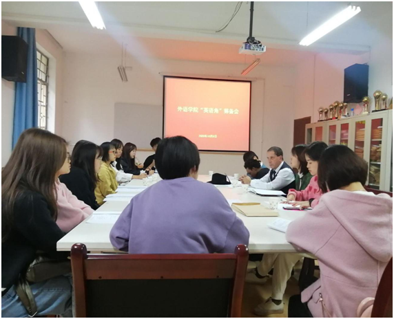 随后,外院学院教学副院长胡卫卫强调了大学英语角活动宗旨和目标,英语角对浓厚校园外语学习氛围、为学生展示外语风采、语言学习习惯养成和交流思想学习方法的重要意义。针对筹备工作的内容及开展情况,在活动时间、活动方式、宣传及后期准备等方面提出了意见和建议。