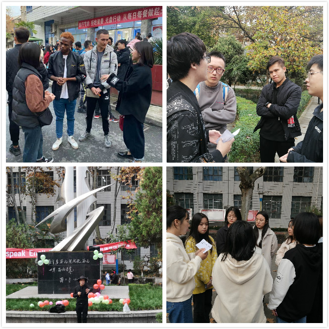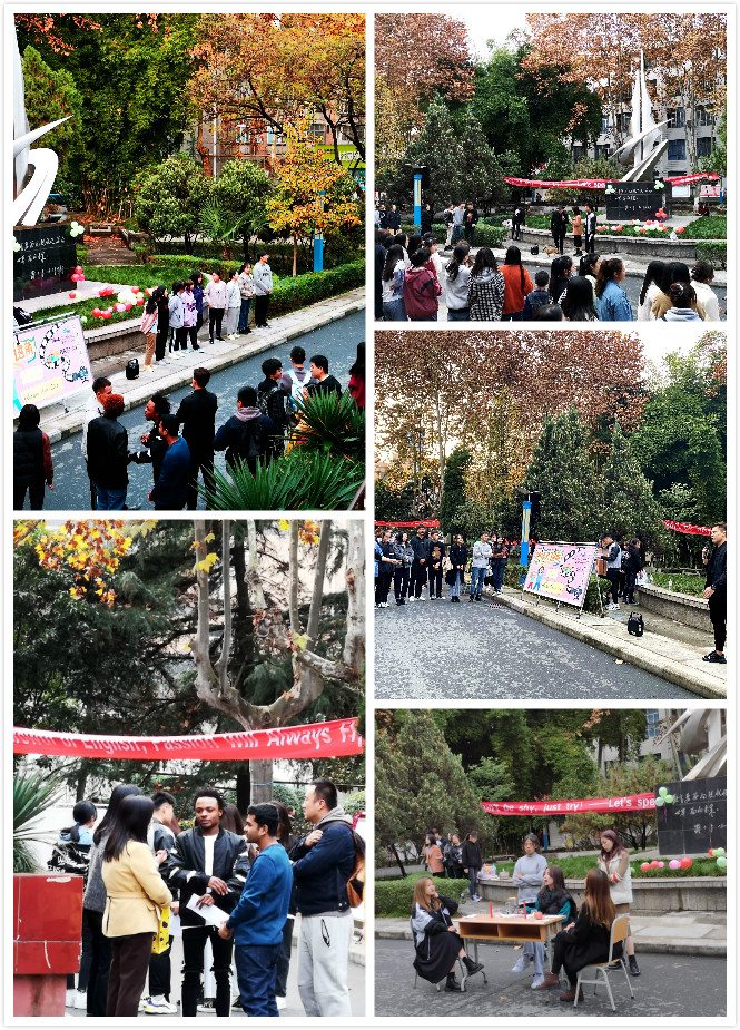 为丰富校园文化生活,提高同学们的英语口语水平,外语学院“西视界”社团于2020年11月18日下午16:30在江南校区一号食堂前花园成功举办了主题为“待疫毕,花正盛,你想在世界的哪一隅邂逅美好?”的英语角活动。外语学院全体学生及国际交流学院留学生代表参加了此次活动。外语学院领导班子、外教Frank先生、专业社团指导教师出席了活动。