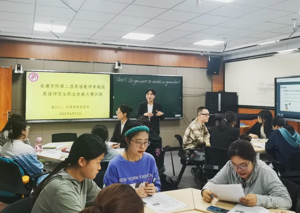 为进一步为提高师范生教育教学技能,培养师范生教学实践能力,贯彻实施《安康学院第二届英语教师卓越班实施方案》,4月16日上午,外语学院在师范生实训中心4204教室举办第二届英语教师卓越班英语师范生职业技能大赛专题培训活动。卓越班全体学员参加了培训。培训由外语学院青年教师袁昌丽主讲。