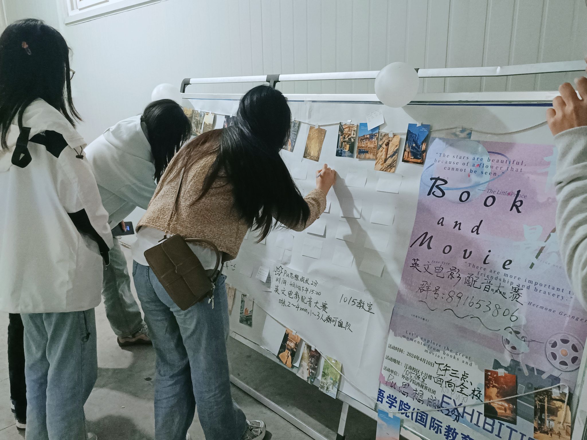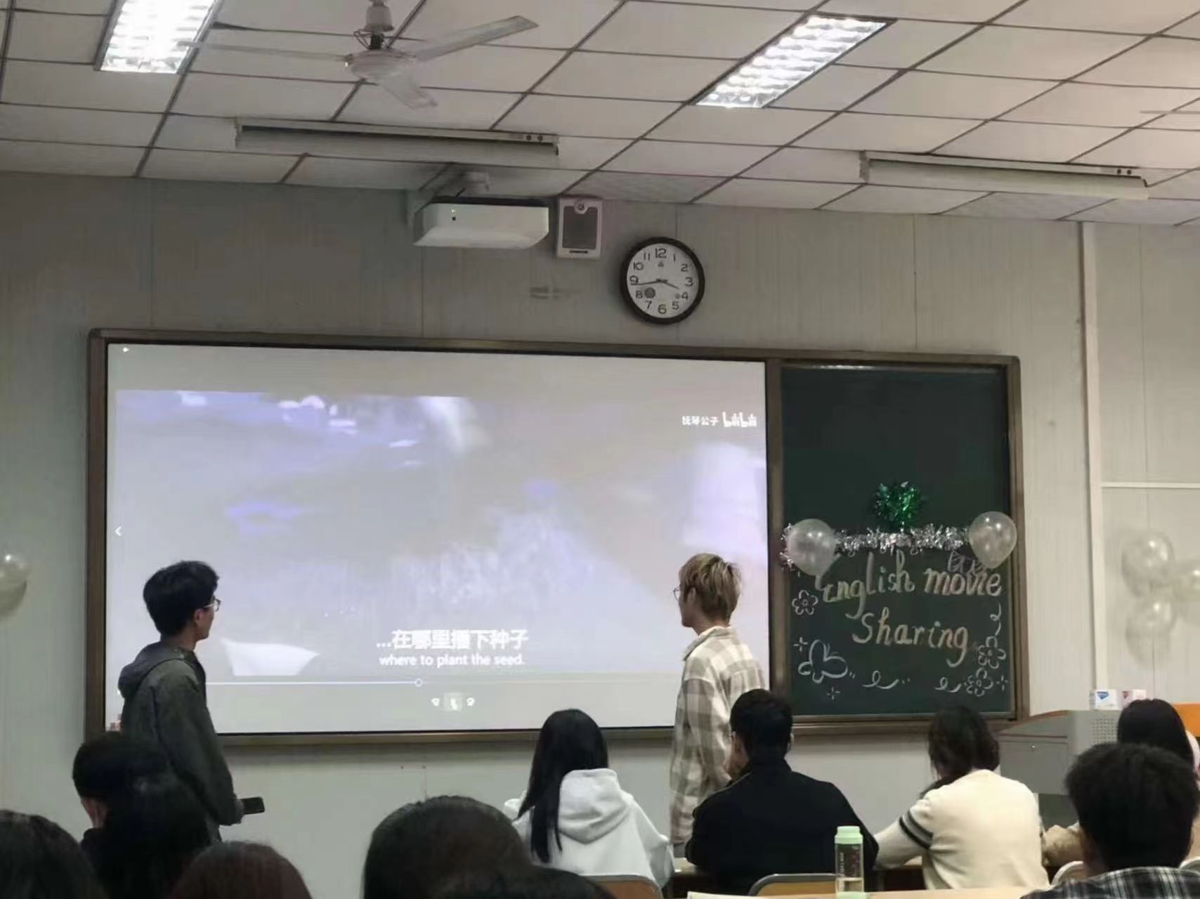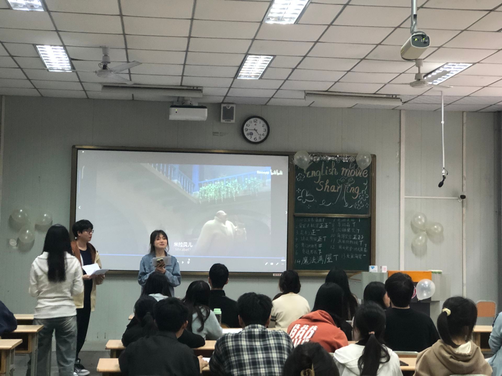 首先,同学们积极的在便签上写下了自己喜爱的电影台词,然后邀请同学对所写进行朗读分享。接着,主持人放映些电影海报和经典台词,同学们踊跃举手进行猜谜,极大增加活动趣味性。