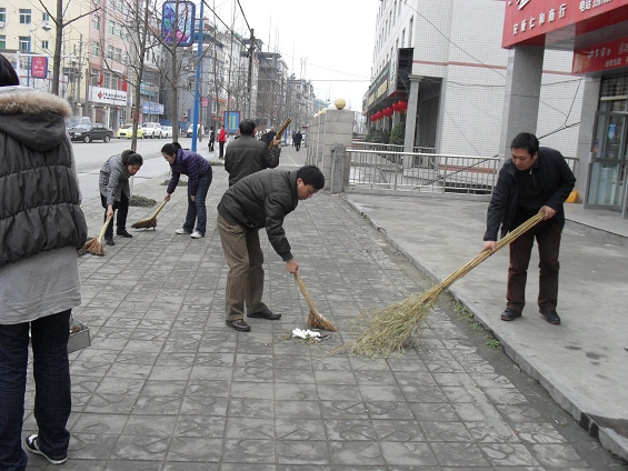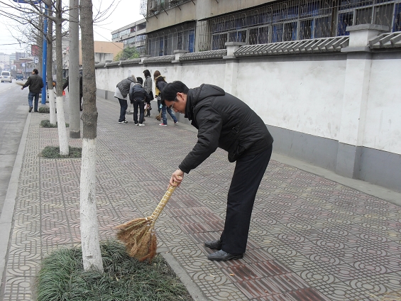 3月5日下午,在细丝春雨中,外语系的党政领导和部分师生走上街头,对南环路双创责任片区进行了义务清扫,监察处、工会、图书馆、双创办等部门的负责人和老师也一同参加了劳动。大家拿着扫帚、铲子、火钳等工具,清扫南环路的人行道,对行道树和绿化丛中的垃圾进行清理、捡拾,规范各门店前的的乱停乱放行为,大家在??细雨中用实际行动践行雷锋精神。