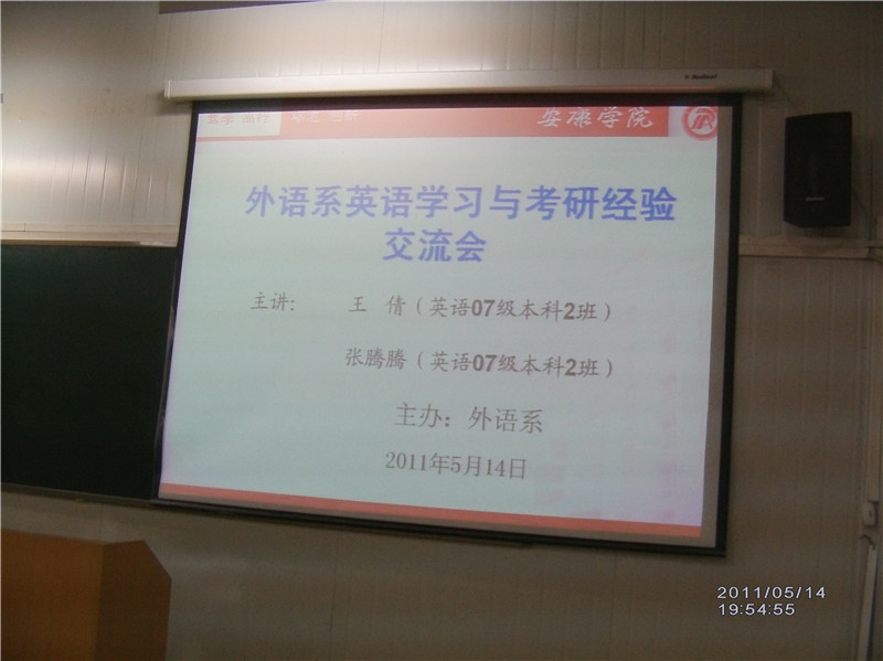 为了给同学们搭建更加良好的英语学习与考研交流平台,更加充分利用优秀毕业生资源,使08级、09级同学设定更实际的学习目标,更明确努力的方向,找到有效地学习方法,由外语系主办的首场英语专业学习与考研经验交流会,于5月14日晚在6408教室成功举办。外语系英语专业的近百名同学参加了此次交流会。