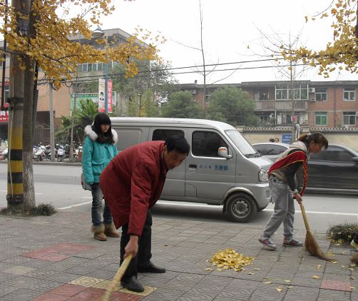 经过近一个小时的清扫,责任区的卫生状况得到了明显改善。