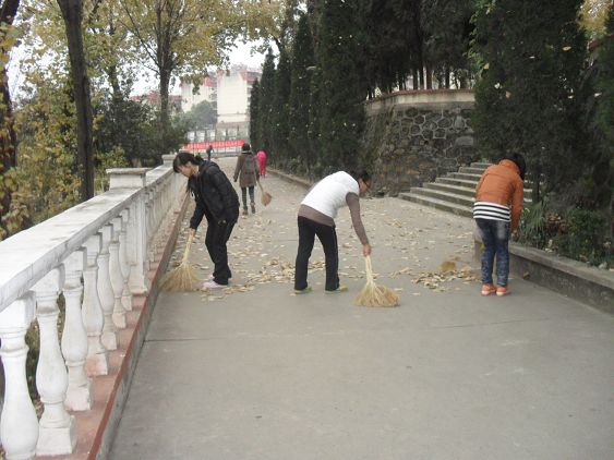 为迎接国家级卫生城市的考核鉴定,营造干净、整洁的校园环境,11月28—12月3日,外语系组织青年志愿者三次对校内清洁区的卫生进行了清扫。同学们对6号教学楼前报栏的“野广告”进行了清除,对满地掉落的树叶进行了认真清扫,对花园、草坪中散落的垃圾进行了捡拾,特别是教学楼后面的竹林一直是卫生死角,在李书记的带领下,大家对卫生死角进行了彻底清扫。