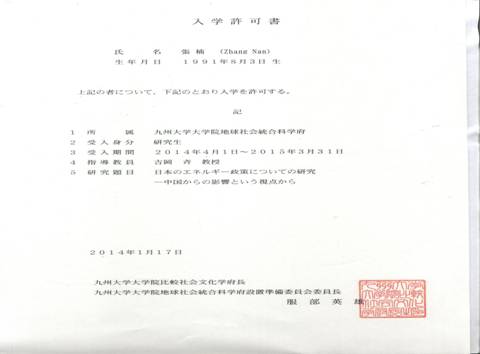 外语系2013届日语专业(首届)毕业生张楠已被日本九州大学科学技术史专业录取为硕士研究生。该生在校期间学习刻苦,成绩优异,先后获得国家励志奖学金、学校奖学金,取得了日语国际一级、专业八级等级证书。