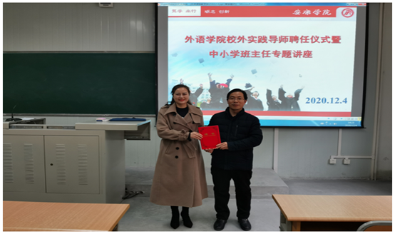 师范生走向工作岗位以后,担任班主任工作十分必要。为了帮助卓越班学生落实师范专业认证的“一践行,三学会”要求,外语学院邀请汉滨高中西校区优秀班主任鲁延爱、果园小学副校长钱静等为卓越班学生开展中小学班主任的专题讲座,为同学们传授班务管理与综合育人的经验。