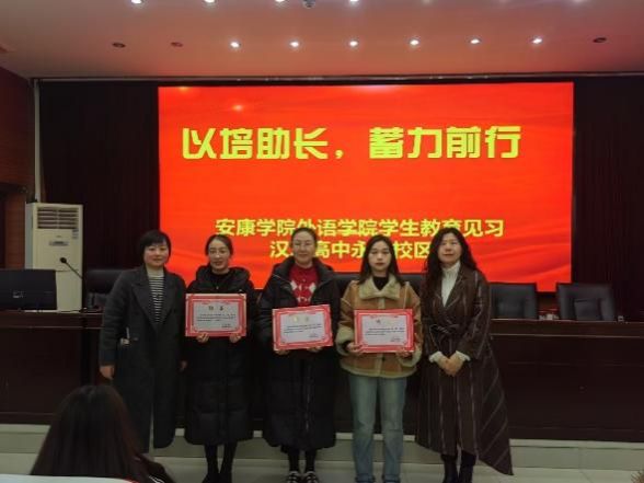 最后,外语学院胡院长进行了总结发言,胡院长对汉滨高中永红校区为本次见习活动提供的支持与帮助表示衷心感谢,并为三位老师颁发了校外指导教师聘书。同时胡院长对师范生们提出了殷切期望,希望同学们能够珍惜见习机会,将理论知识与实践相结合,不断提升自己,早日成为优秀的教育工作者。