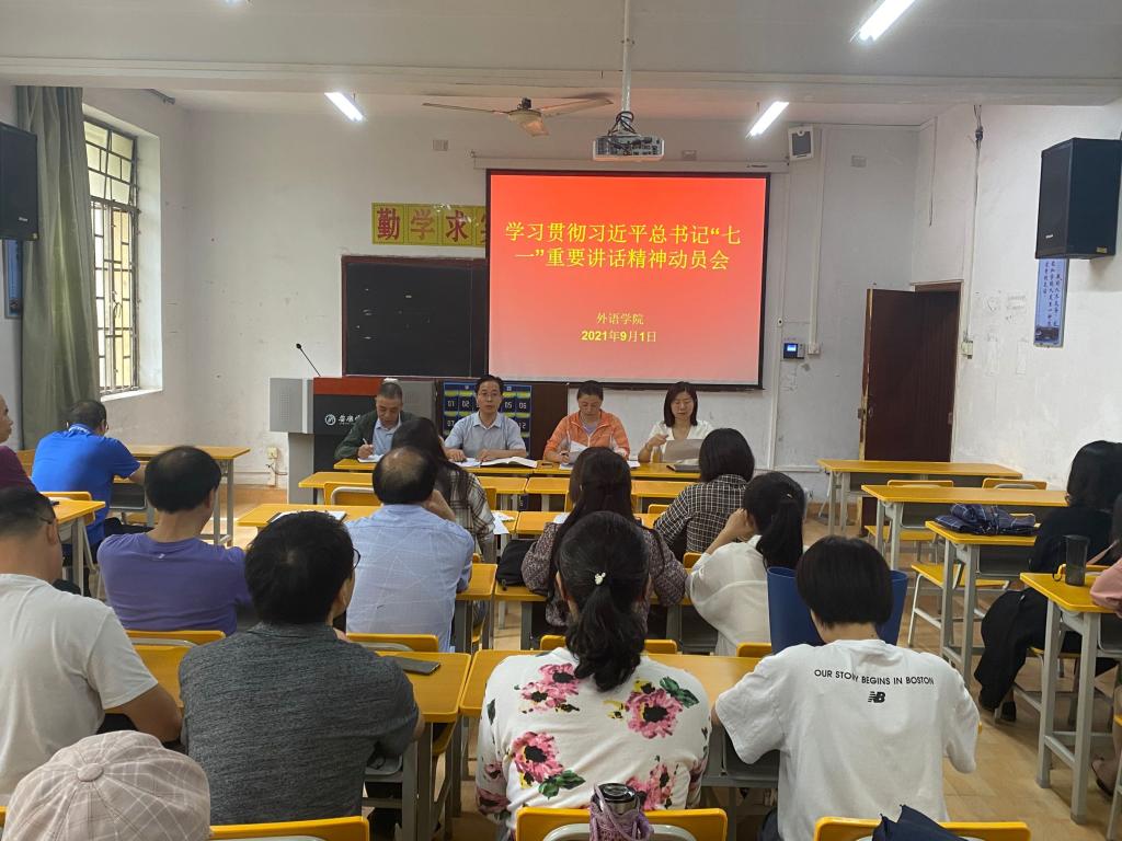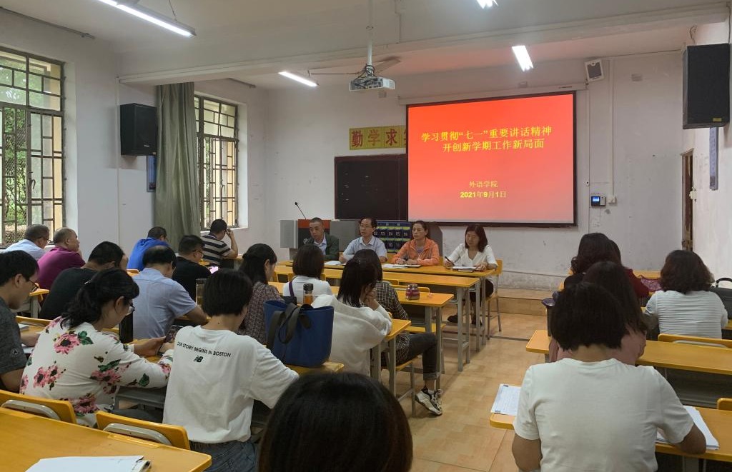 为深入贯彻“七一”重要讲话精神,做好新学期各项工作。9月1日下午,外语学院在6107室召开了全院职工大会。外语学院领导班子,全体党员干部、全院教职工共同参加了会议。会议由副院长(主持工作)张哲华主持。