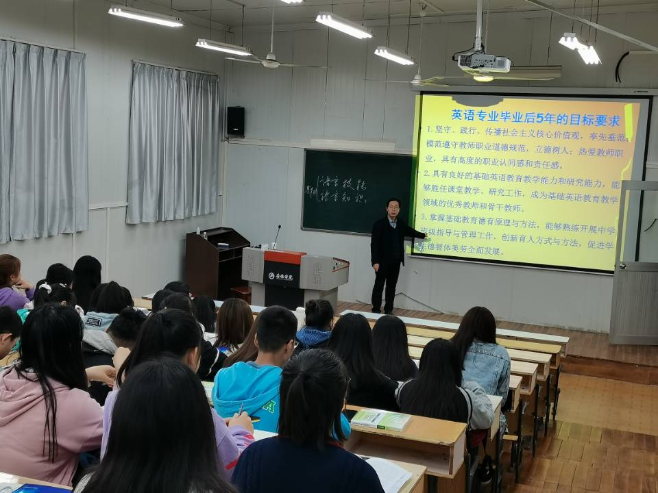 10月22-23日,副院长张哲华率先为2020级新生开展了首次专业思想教育专题讲座。此次讲座以《英语专业导论》课程为依托,全面介绍外语学院及英语专业历史沿革、专业概况,详细解读了我校英语专业人才培养方案,为新生提出了大学四年专业学习规划,强调了毕业条件、学籍管理、考试管理和课外学分等重要规定,同时展示了外语学院历届毕业优秀校友风采。