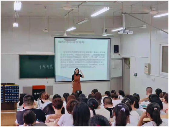 新生专业思想教育以系列讲座的形式进行,将历时四个星期。主要介绍英语及商务英语专业的学科属性、专业特点、人才培养目标、课程设置、主要学习内容、主要学习方法、职业规划等,旨在帮助学生全面了解专业基本属性及学科价值,提高学生对专业的认同,加深对专业的认识,增强学习兴趣并做好未来的职业规划。
