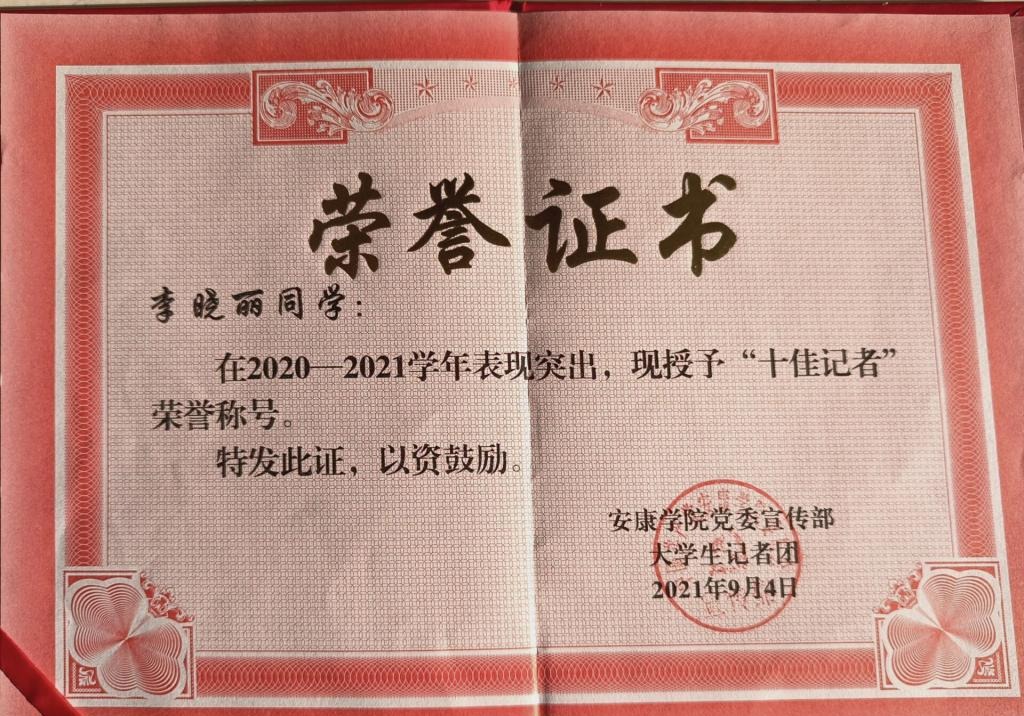 少年易老学难成,一寸光阴不可轻。在学习之余,她还积极参加校内校外组织的各项活动。在学校里,她曾任大学生记者团总务部的部长,在面对诸多复杂繁琐的事物时,她学会了如何协调多项工作任务,这都是课堂之外带给她的收获。除此之外,她还曾在校外从事兼职,这使她能够尽早参与社会、了解社会、适应社会。