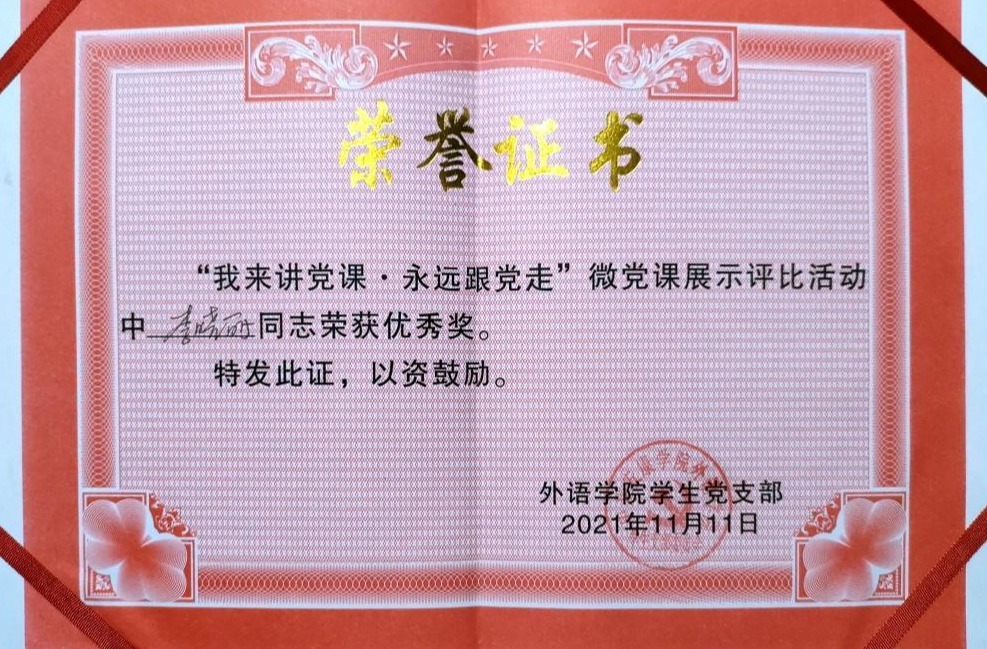北野武在他的书中这样写道:“虽然辛苦,我还是会选择那种滚烫的人生。”她始终相信:青春是用来奋斗的,不是用来挥霍的。从踏入校园的那一刻起,李晓丽便不断的提升自己各方面的能力。在学习上,作为一名英语专业的学生,她非常注重知识的积累和语言素质的培养,不断提升自己的学习水平和实践能力。在思想上,她积极要求进步,自觉学习党的先进理论和思想,时刻以一名共产党员的标准严格要求自己。她通过两年的努力,现已成为一名中共预备党员。此外,她还在不断鼓励身边想申请入党的同学,鼓励他们积极进取,争取早日加入中国共产党。