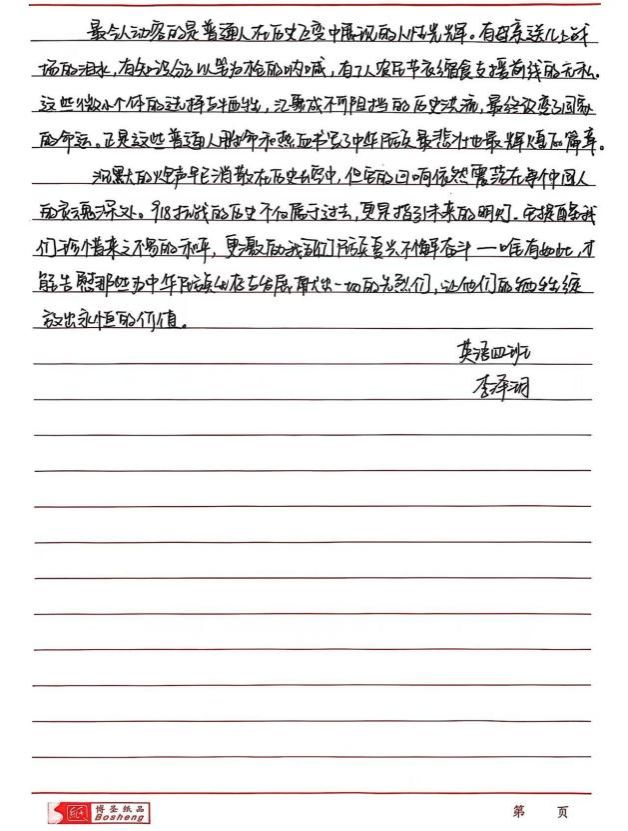 同学们纷纷表示,思政课上的历史故事与精神阐释让自己深受触动,从抗战先烈“舍生取义、保家卫国”的英雄事迹中读懂了民族脊梁的重量,也更加清晰地认识到当代青年应扛起的时代责任与历史使命。