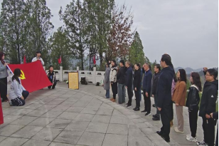 活动中,全体人员肃立在牛蹄岭战争纪念碑前,高唱《中华人民共和国国歌》,激昂的旋律回荡在遗址上空;党总支副书记、院长张哲华带领党员干部、师生举起右拳,重温入党誓词,铮铮誓言既是对革命先辈的深切告慰,更是坚守使命、砥砺前行的坚定承诺。宣誓完毕,师生们通过默哀、敬献鲜花,鞠躬致敬表达了对英烈的无限崇敬与缅怀之情。