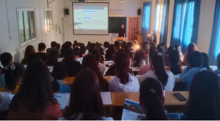 徐长江通过宣传PPT和视频为学生介绍了马来西亚的社会习俗以及文化背景,并展示了马来西亚玛拉工业大学的师资情况和申请条件,说明了国际英语教师培养项目的重要意义,通过详细的数据说明近年来读研、考硕的重要性,向学生说明了海外留学也是毕业去向选择的较好路径。