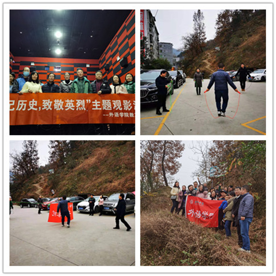 为深入学习、贯彻落实习近平总书记在纪念中国人民志愿军抗美援朝出国作战70周年大会上的重要讲话精神 ,进一步传承红色基因,弘扬民族精神,团结引领我院教职工在抗美援朝精神的感召下,不断增强全院教职工的凝聚力和战斗力,12月6日外语学院举办“传承红色基因 牢记初心使命”党建+工会活动,院党总支、工会组织学院全体党员干部和教职工观看了爱国教育电影《金刚川》,并开展了冬季趣味体育运动会。校党委副书记胡波应邀参加了本次活动。