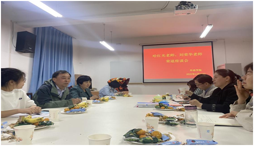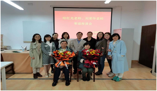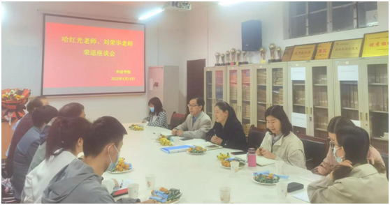 为弘扬中华民族尊师重教的传统美德,外语学院班子高度重视,精心安排,4月15日下午,退休教师哈红光老师、刘荣华老师荣退座谈会在6109会议室隆重举行。外语学院领导班子、工作主席、系主任、教师代表、学生代表参加座谈会。会议由党总支书记肖红香主持。