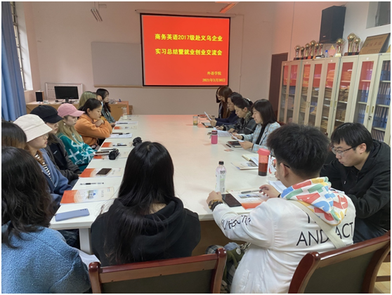 3月30日,外语学院在6109会议室举行了商务英语2017级学生赴浙江义乌企业实习总结暨就业创业交流会。外语学院党总支书记肖红香、副院长(主持工作)张哲华、副院长胡卫卫、商务英语系主任彭方圆、学工办主任梁博文、实习带队教师冯琳以及商务英语2017级赴浙江义乌实习生参加了本次会议。会议由冯琳主持。