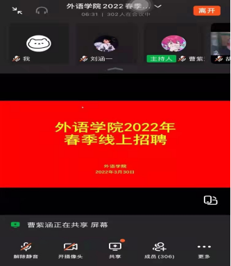 为进一步拓展就业渠道,为毕业生和用人单位搭建交流沟通平台,帮助毕业生顺利就业。3月30日下午,外语学院特邀安康秦巴漫创玩具产业运营管理有限公司和安康领路人网络科技公司为毕业生做就业求职宣讲,并开展线上招聘。外语学院院长张哲华,辅导员常远红、李梦以及全体毕业生参加了会议,会议由学工办副主任梁博文主持。