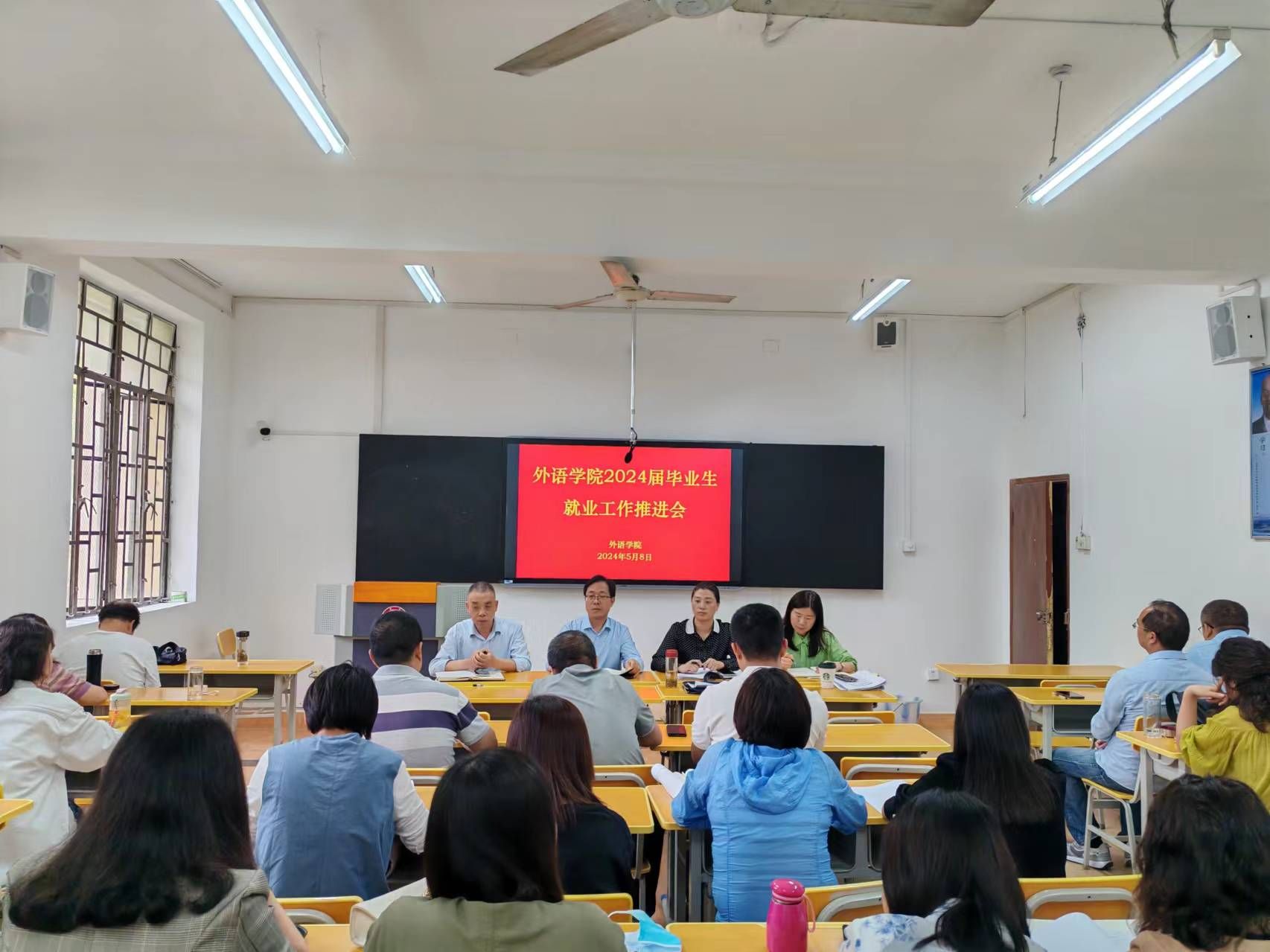 5月8日下午,外语学院在6107召开了2024届毕业生就业工作推进会。学院领导班子、全体党员及全院教职工参加了会议。会议由党总支书记肖红香主持。