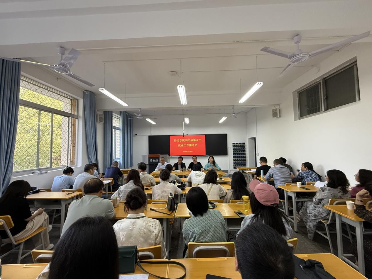 为深入贯彻落实学校关于2025届毕业生就业工作的决策部署,进一步压实责任、精准施策,全力推进我院2025届毕业生高质量充分就业,4月30日下午,外语学院在6206会议室召开2025届毕业生就业工作推进会。学院领导班子及全体教职工参加会议。会议由党总支书记肖红香主持。