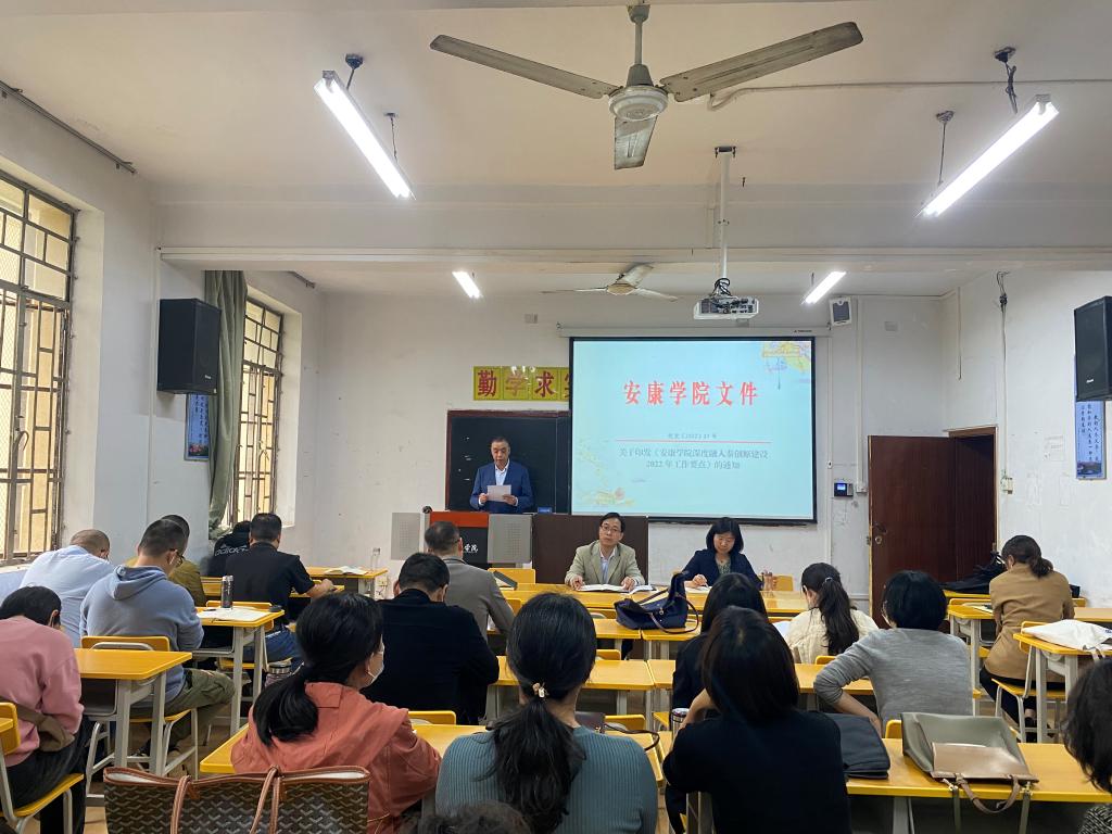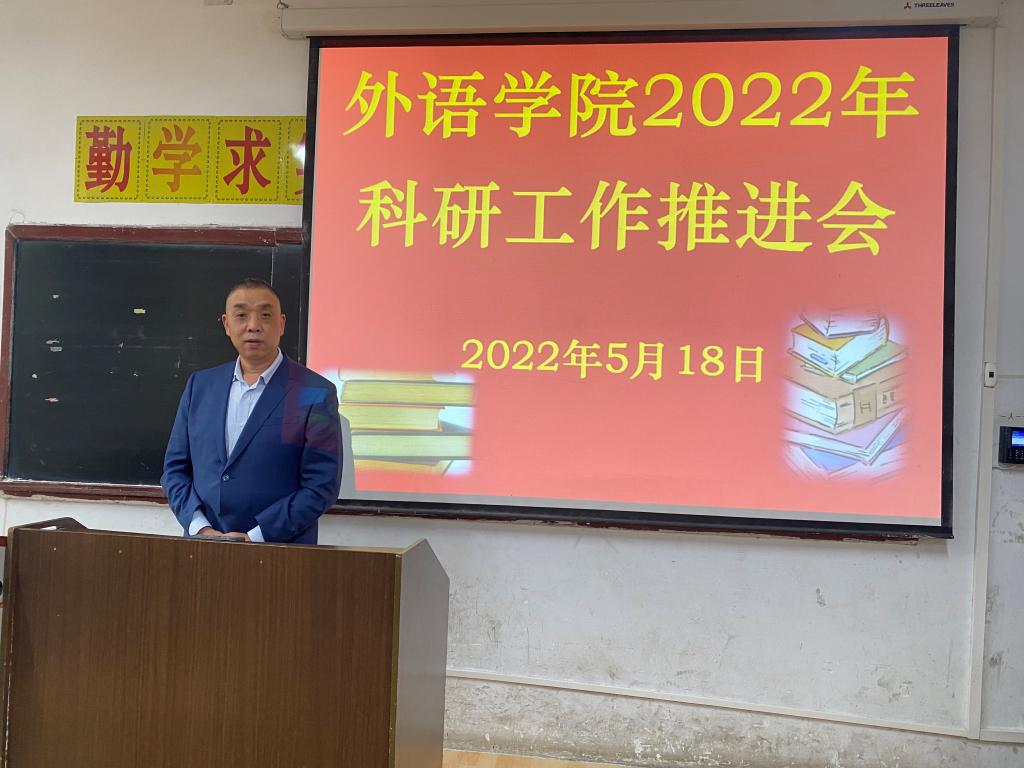 为全面贯彻落实《安康学院纵向科研项目经费管理办法(修订)》、《安康学院横向科研项目管理办法(修订)》、《安康学院科研创新团队建设管理办法(试行)》、《安康学院深度融入秦创原建设2022年工作要点》等文件精神,外语学院于2022年5月18日在6107教室组织召开了外语学院科研工作推进会,外语学院领导班子和全体教师出席了本次会议。
