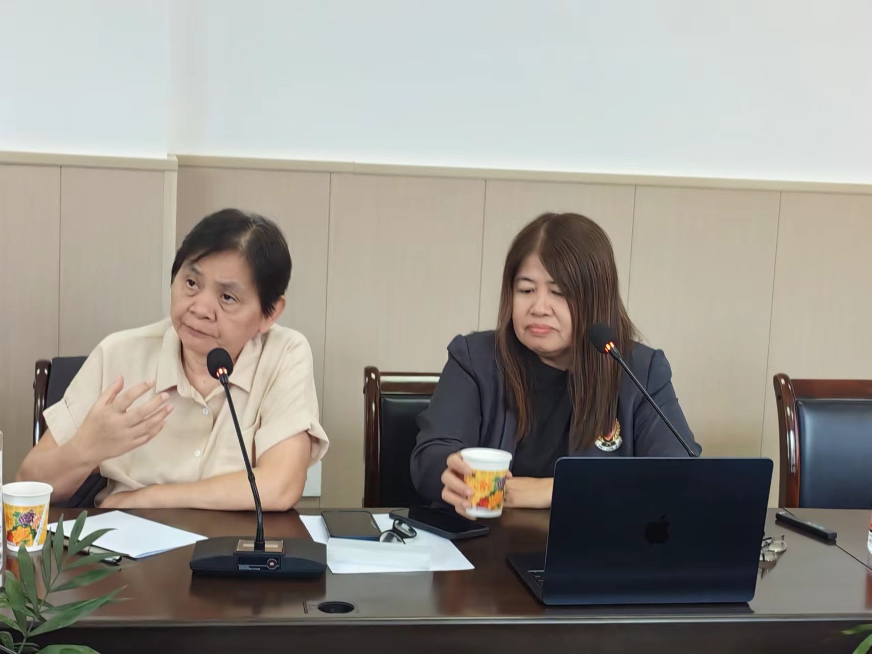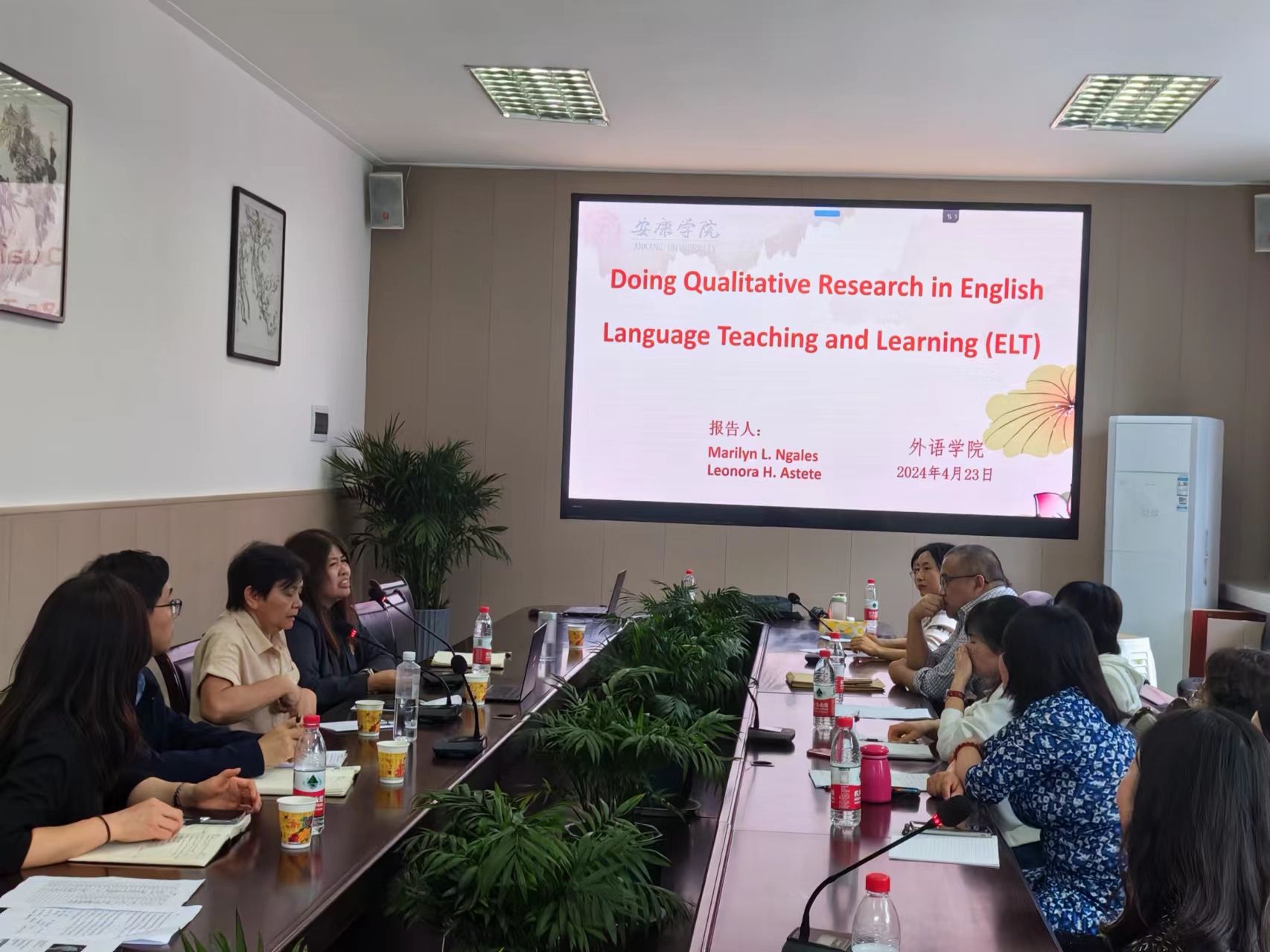 为积极推进国际学术交流,4月23日,应我校外语学院邀请,来自菲律宾莱西姆大学人文与外语学院院长、博士生导师Marilyn L.Ngales教授和Leonora H. Astete博士在江南校区第一会议室为外语学院全体教师做学术报告。报告会由副院长刘子富主持。