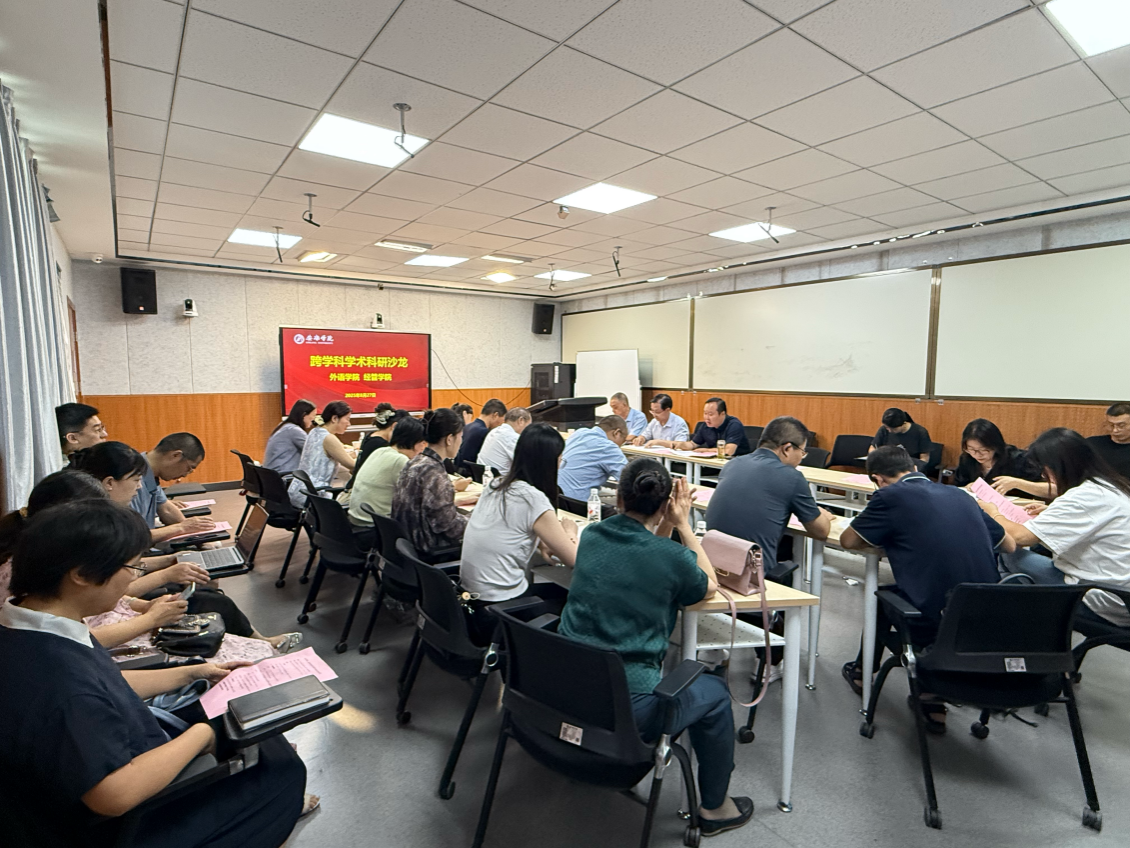 8月27日,由外语学院、经管学院联合举办的“习近平经济思想的理论逻辑与实践逻辑”跨学科学术沙龙,在江南校区师范生职业技能训练中心4201室举行。教师发展中心主任付争方教授、科研处副处长黎欢吉,以及来自外语学院、经管学院的相关教师齐聚一堂,聚焦高校教科研工作实际,深入探讨习近平经济思想的理论与实践逻辑。沙龙由外语学院院长张哲华主持。
