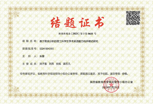 朱蕾老师主持的课题《基于需求分析的理工科学生学术英语能力培养模式研究》(SGH18H393),通过研究团队的通力协作,完成调研报告1篇,公开发表研究论文2篇,完成研究报告1篇。该课题对通用学术英语教学的探索有助于地方本科院校大学英语课程体系的构建,积极推动大学英语后续课程结构的优化和提升,促进理工科学生借助英语语言工具进行专业学习与研究等方面能力的培养。此外,该课题关于理工科学生英语学习需求的有效分析,对于提高理工科学生的学术英语能力和英语综合运用能力,帮助培养出社会需要的高素质复合型人才,增强学生在就业市场上的综合竞争力方面进行了积极的尝试。