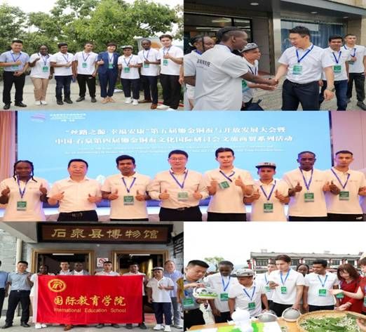 6月15日上午,“丝路之源·幸福安康”第五届鎏金铜蚕与开放发展大会暨中国·石泉第四届鎏金铜蚕文化国际研讨会系列活动在石泉县池河金蚕小镇开幕,安康市委常委、宣传部部长、石泉县委书记陈莲,市政府副市长周耀宜,县委副书记、县长梁鸿等相关领导、海内外专家学者及国际嘉宾出席,县委常委、常务副县长刘伟主持开幕式。我校党委委员、副校长张东红,“一带一路”沿线国家来华留学生代表及外语学院、国际教育学院共七名师生应邀参加。