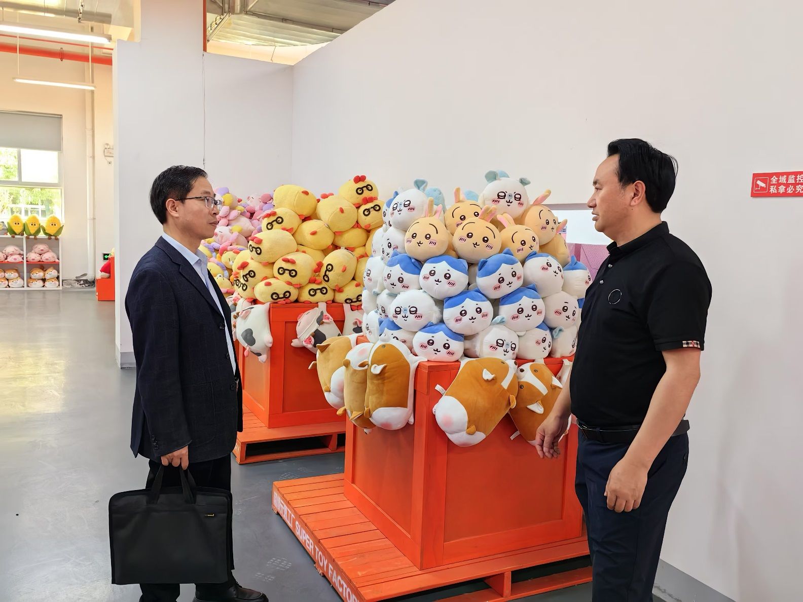 在调研活动中,张哲华一行受邀参观了企业陈列馆、生产线和物流中心,直观感受了毛绒玩具从生产到销售的全过程,对毛绒玩具产业的实际操作有了更深认识。此外,校企双方还就安康无水港建设、跨境营销、外贸人才需求、校企共育共研等进行了深入探讨。