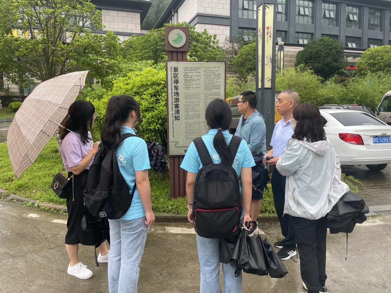 调研途中,刘子富从用词、语法、句子结构等角度,不仅与参加本次暑期社会实践的同学共同欣赏了景区内优秀的语言景观案例,也结合相关翻译理论,与学生共同探讨在景区语言景观中呈现出来的相关问题的优化方案。周纯漪、邓雪玲、陈平等专业教师在助力语言景观赏析和专业指导的同时,特别强调了在习近平新时代中国特色社会主义思想指导下“坚持以文塑旅,以旅彰文,打造独具魅力的中华文化旅游体验”对旅游产业发展的重要价值,这也是贯彻落实习近平总书记“要更好推动中华文化走出去,以文载道、以文传声、以文化人,向世界阐释推介更多具有中国特色、体现中国精神、蕴藏中国智慧的优秀文化”等重要指示的具体体现。