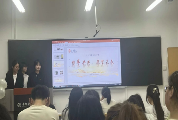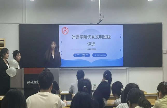 5月22日晚19点,外语学院在6304教室开展2024-2025学年度文明班级评选答辩活动。外语学院团总支书记孟莉、教学工作办公室主任高灿、学生党支部书记刘思晨及学生代表共计60余人参加本次活动。活动由2024级英语3班言俊辉主持。
