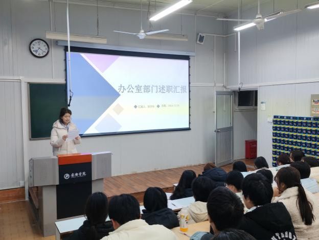 会议伊始,各部门负责人依次述职汇报,紧扣学期工作重点任务,以详实数据支撑与具体案例佐证,系统回顾了在组织建设、学风建设、活动开展、服务学生等方面工作的推进情况与实际成效,全面总结工作亮点与经验做法。同时,结合工作实际客观剖析工作中存在的不足,并立足部门职能定位,精准规划下一阶段工作重点与发展方向。