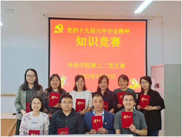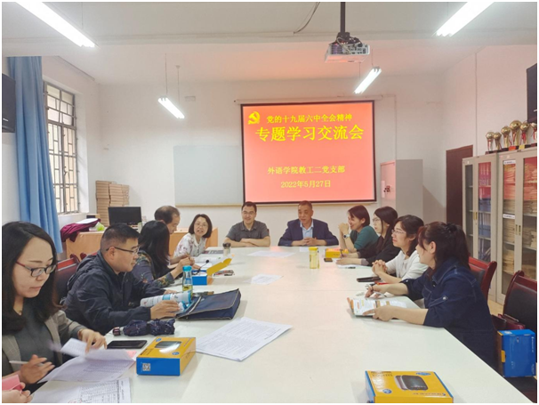 为深化党史学习教育,深刻领会党的十九届六中全会精神,外语学院教工二支部于5月27日下午在6109室召开学习党的十九届六中全会精神主题党日活动。