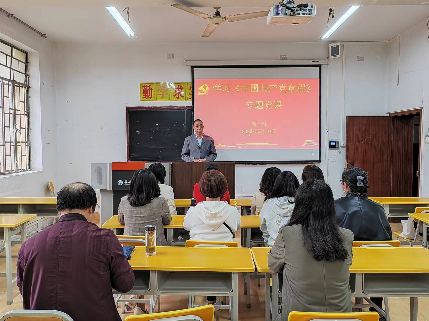 为深入贯彻落实学习贯彻习近平新时代中国特色社会主义思想主题教育,5月10日下午,外语学院教工二党支部开展了学习贯彻习近平新时代中国特色社会主义思想主题教育,党支部书记刘子富对教工二党支部关于开展主题教育做了安排,并以《中国共产党章程》为题,为全体党员讲党课。