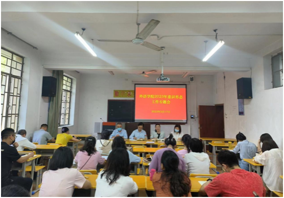 5月17日下午,外语学院在6107召开2023年意识形态工作专题会,外语学院领导班子,全体党员干部、全院教职工共同参加了会议。会议由党总支书记肖红香主持。