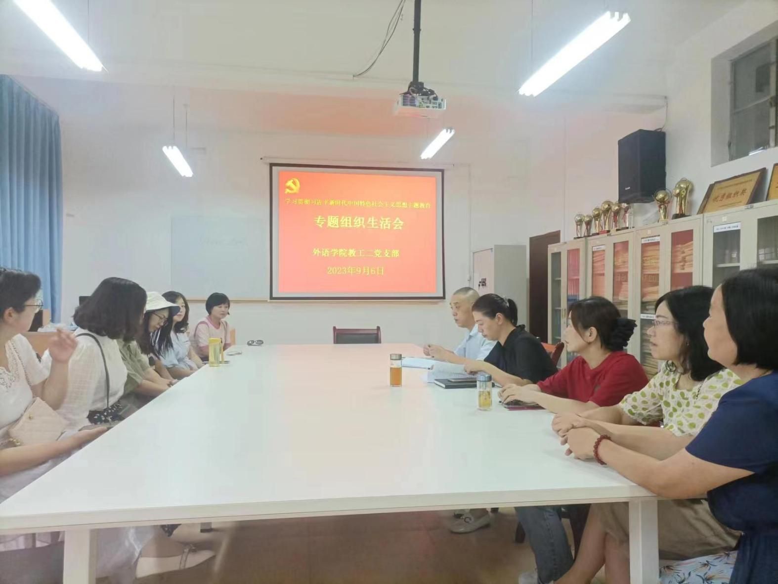 9月6日下午,外语学院教工第二党支部在6109会议室召开学习贯彻习近平新时代中国特色社会主义思想主题教育专题组织生活会。教工第二党支部全体党员参加了会议。会议由党支部书记刘子富主持。