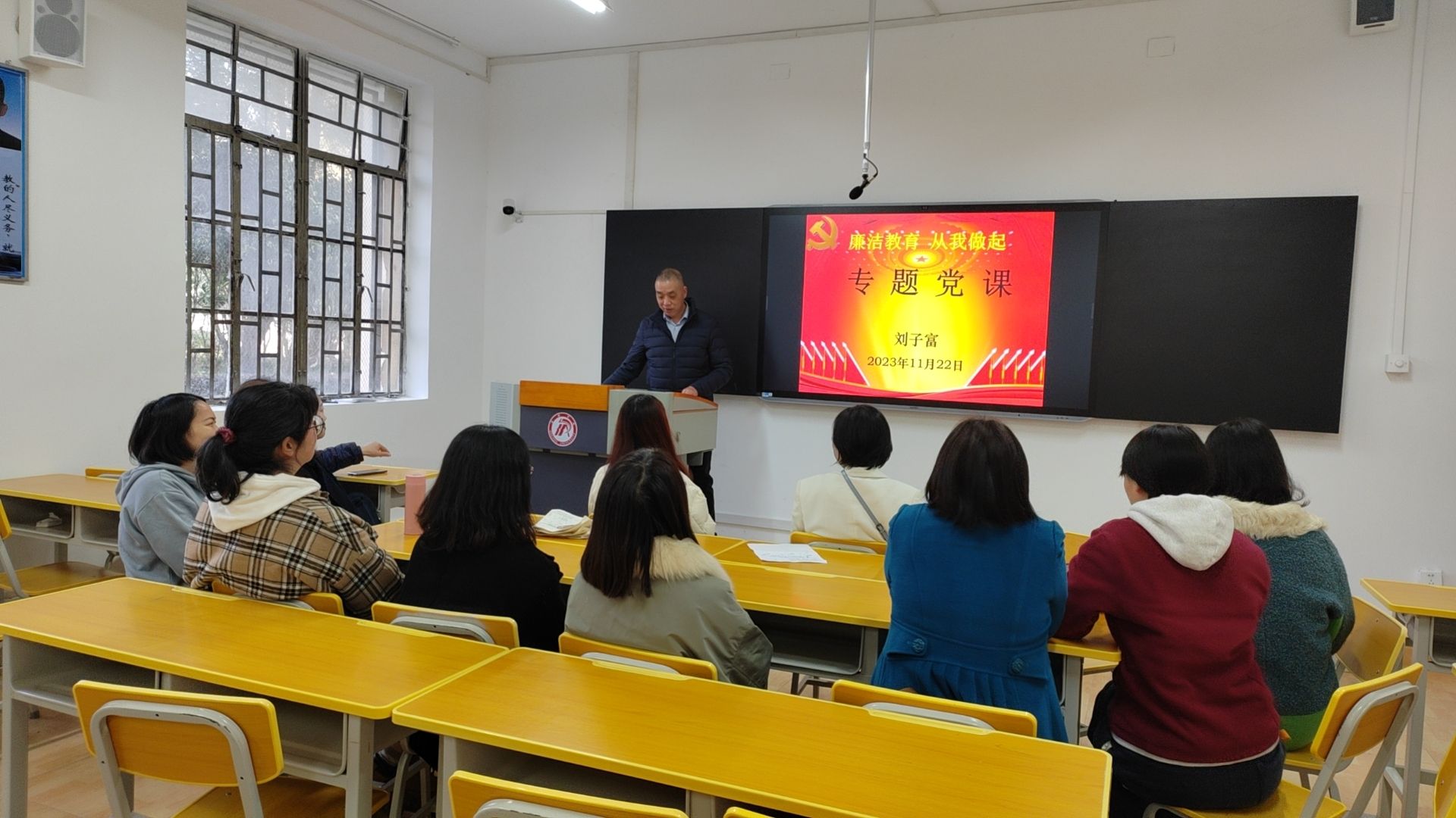 为深入落实学校党委关于党风廉政建设工作的相关部署和外语学院党总支廉洁教育“351”工作安排,2023年11月22日,外语学院教工二党支部在6107教室组织开展“廉洁教育从我做起”专题党课学习活动,本次党课由支部书记刘子富同志主讲。