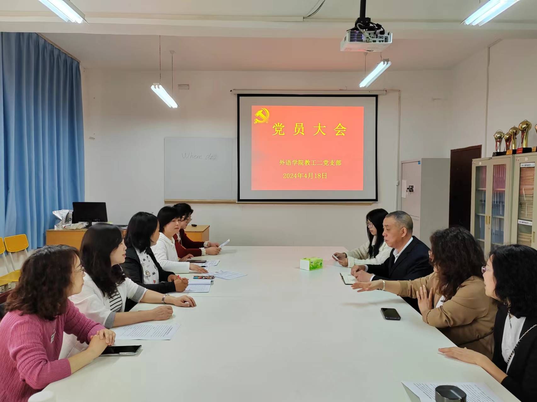 2024年4月18日上午,外语学院教工二党支部在6109室召开党纪学习教育大会,全体党员参加了会议。会议由党支部书记刘子富主持。