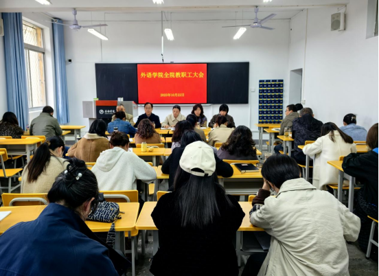 为进一步提升学院教师的思想政治素质和职业道德水平,大力弘扬教育家精神,10月22日下午,外语学院在6206教室召开学习习近平总书记给全国特岗教师代表重要回信精神专题学习会。学院全体党员、全院教职工参加了学习会,会议由外语学院党总支书记肖红香主持。