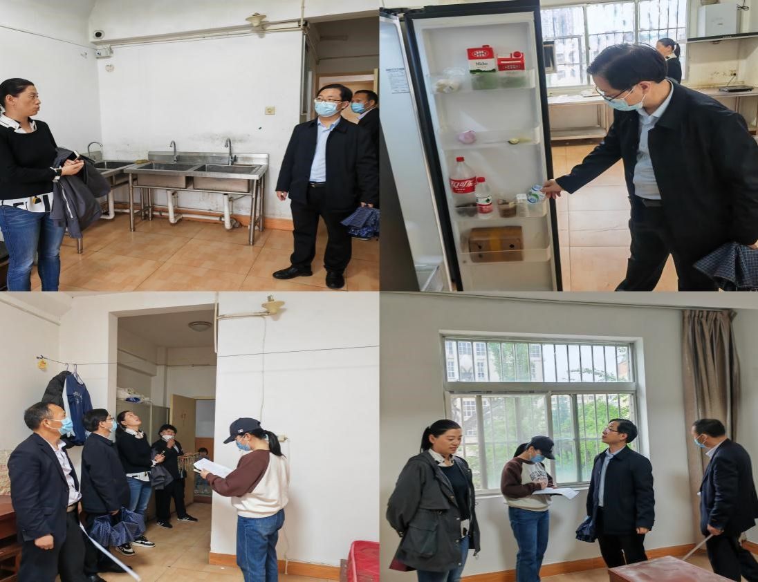 施工队负责人介绍了维修工程建设基本情况及工程验收内容。随后,张哲华一行实地查验了学生公寓维修工程实施质量,包括墙面粉刷、楼顶防水、电线整理及厨房食品安全等。参加人员结合现场查验情况,就工程实施中存在的问题进行了现场反馈,施工负责人作了项目整改表态发言。