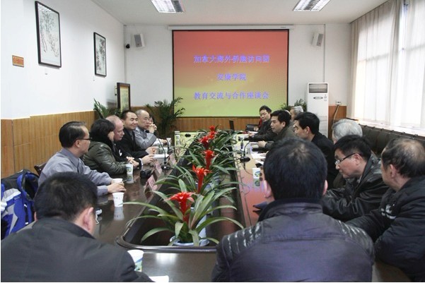 随后,在第一会议室举行了“加拿大海外侨胞访问团与安康学院教育交流与合作”座谈会。座谈会由我院副院长陈刚教授主持。学院办公室、学生就业处、国际合作与交流处、数学系教师及老教师代表参加了座谈会。