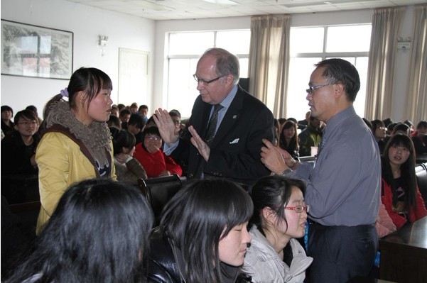 访问团成员,加拿大爱心教育慈善基金会、环球爱心教育基金会创办人,教育家刘南生先生做了题为“教育强国的人生实践”专题演讲。他通过分享自己的成长经历,强调“人生离不开教育,教育改变人生”的真理。提倡要孝敬父母,关爱他人,奉献爱心。访问团成员、加拿大前国会议员Mr.Bryon先生讲述了15次中国行感受到的中国翻天覆地的变化, 激励同学们打好知识基础。 演讲会气氛热烈,不断博得同学们热烈的掌声。