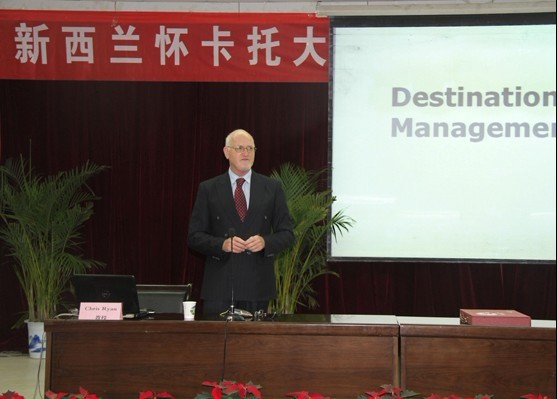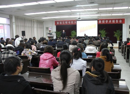 访问期间,Christopher Ryan教授还在我校图书馆报告厅为安康市各县区旅游行业主管部门负责人、我院旅游专业师生等进行了题为《旅游目的地生命周期》的讲座。安康市市长方玮峰,副市长巨拴科,副市长杜寿平,市长助理、安康市旅游局局长王汉琳等参加了讲座。Chris Ryan教授结合实例,深入浅出地分析了旅游目的地的生命周期,以及不同生命周期中应该注意的问题,指出旅游目的地的规划对于旅游目的地发展具有重大影响,应该从长远着手注重发掘本地文化遗产,弘扬本地特色,做好旅游业发展的长期规划。教授运用了大量的数据、图片及视频资料,为与会人员呈现了一场精彩的讲座。之后Chris Ryan教授与师生们又进行了现场交流,回答了同学们关于旅游发展的问题及我院师生关于旅游专业实践能力培养的有关问题。