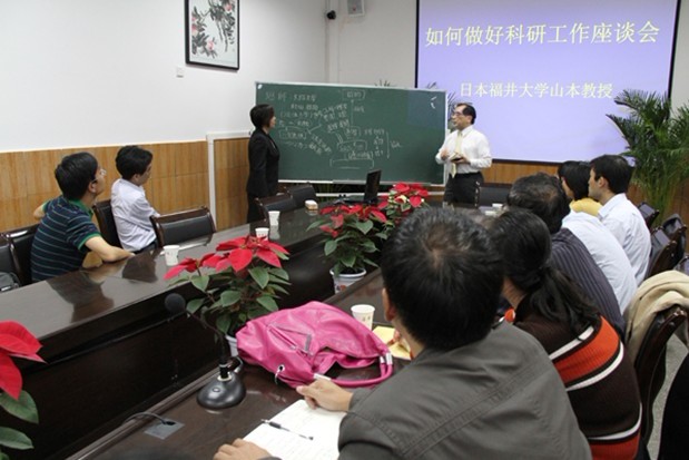 12日下午,山本教授与我院30位青年科研骨干教师进行座谈,就如何做好科研工作介绍了自己的心得体会。山本教授以自身科研实例现身说法,详细介绍了怎样进行研究设计、如何克服研究困境、如何开展产学研合作等问题。山本教授强调,做科研要博学,要善用团队和合作伙伴的力量。山本教授丰富的阅历、厚重的学术积淀和他孜孜不倦的钻研精神,深深感染了我院科研骨干教师。