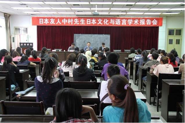 同日,中林均先生为我院外语系日语专业师生作了关于日本语言与文化的报告。中林均先生以“我与中国”为题,阐述了日语文字的起源以及中日文化在语言和社会等方面产生的影响。中林先生幽默生动的语言赢得了阵阵热烈的掌声。