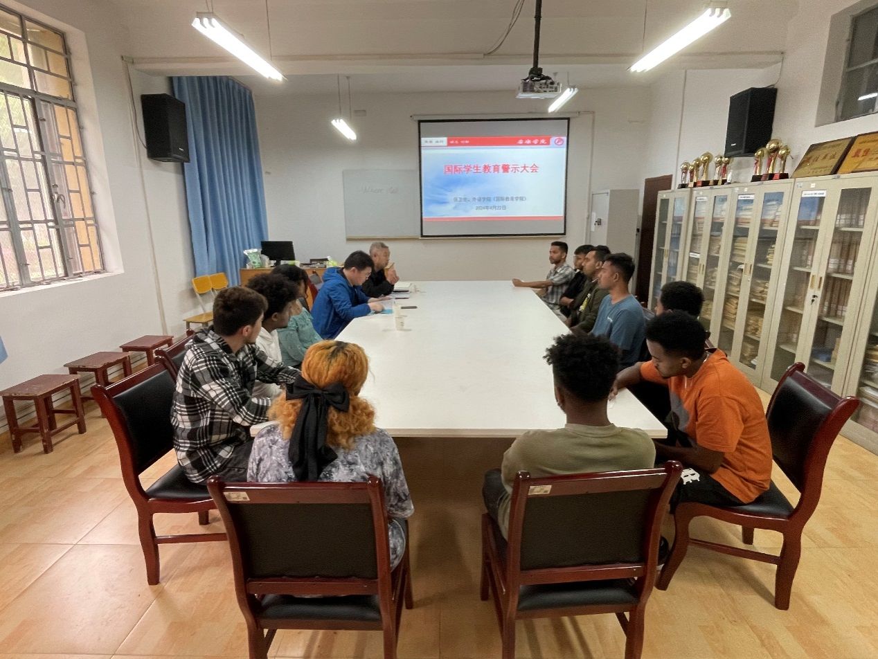 为保障国际学生合法权益,维护校园安全稳定,4月22日下午,党委保卫处、外语学院(国际教育学院)召开国际学生教育警示大会。党委保卫处治安科科长王登文、消防科科长杜恒,外语学院(国际教育学院)留学生专职辅导员陆传梓及全体国际学生到场参会。会议由陆传梓主持。
