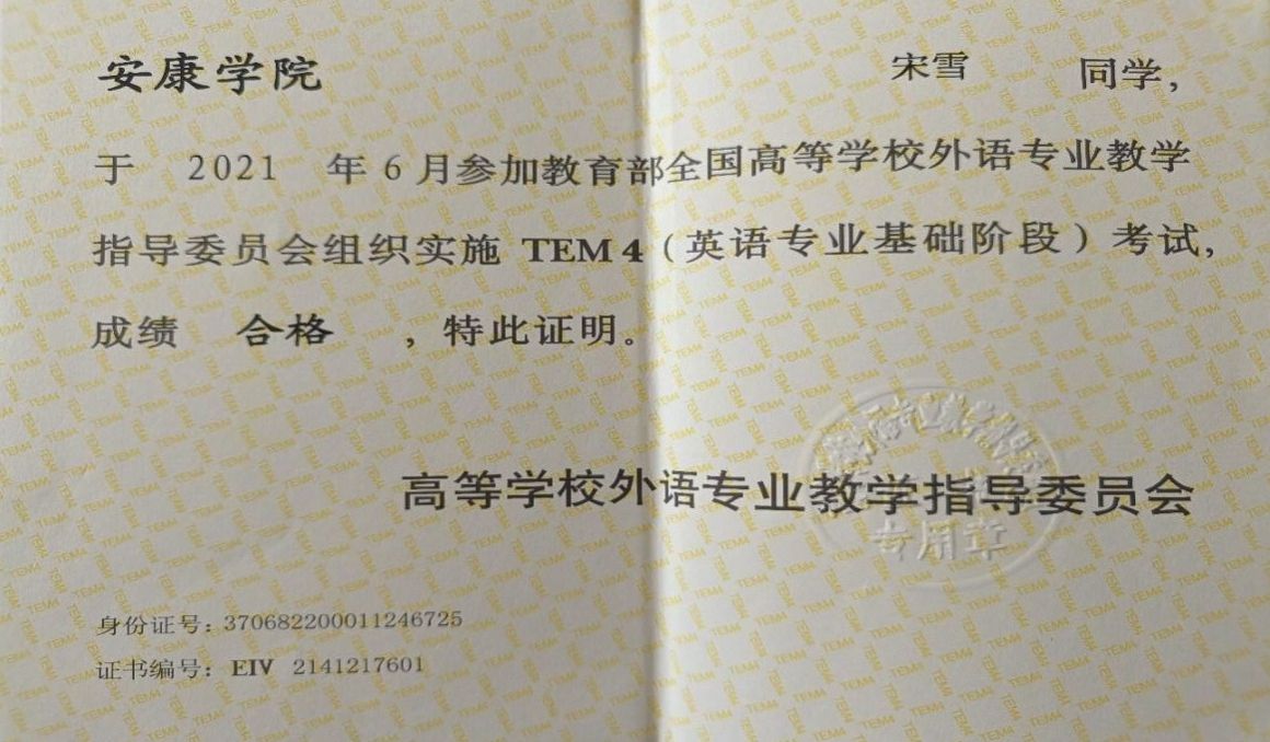 在专业能力培养方面,我顺利通过大学英语四、六级考试及英语专业四级考试,并取得全国商务英语翻译中级笔译证书。当然,我也参加了各类专业比赛,例如,曾获得“中语智汇杯”全国高校商务谈判大赛陕西省三等奖,“外教社·词达人杯”大赛陕西省本科组三等奖,“亿学·新东方乐词杯”省一等奖,“外研社·国才杯”全国英语写作及阅读大赛校赛一等奖,曾获得过学院单项奖励金等。